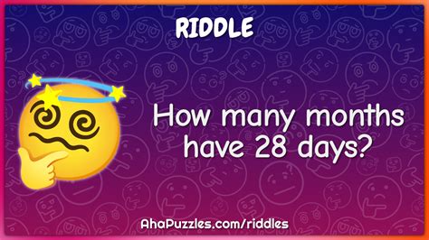 It's a popular riddle or trick question that asks, "Which month has 28 days?" The answer, of course, is all of them! Every month in the Gregorian calendar consists of at least 28 days, making it a fun and unexpected response to the question.